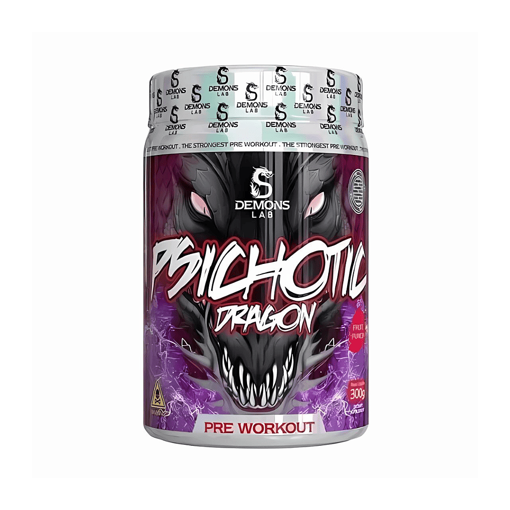 Não perca tempo! Experimente o Pre Treino Psichotic Dragon Fruit Punch 300G da Demons Lab e sinta a transformação em seus treinos. Adquira agora na RR Suplementos e eleve seu desempenho ao estado Psichotic!