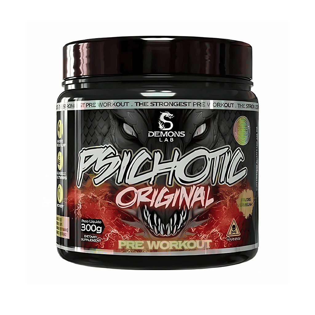 Invista em você, potencialize seu treino e transforme sua vida fitness com o Psichotic Original 300G da Demons Lab. Você nunca mais verá seus treinos da mesma forma. Sinta a diferença com o pré-treino número um em eficiência!