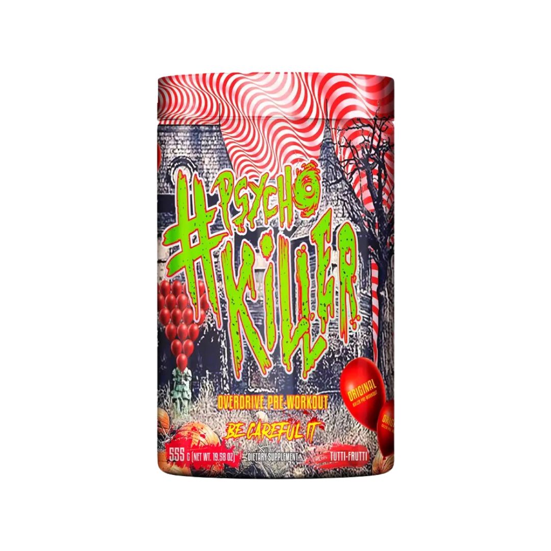 PSYCHO KILLER é um pré-treino desenvolvido para aumentar os níveis de energia, melhorar o foco mental e maximizar a resistência durante os treinos, proporcionando um impulso extra ao desempenho físico.